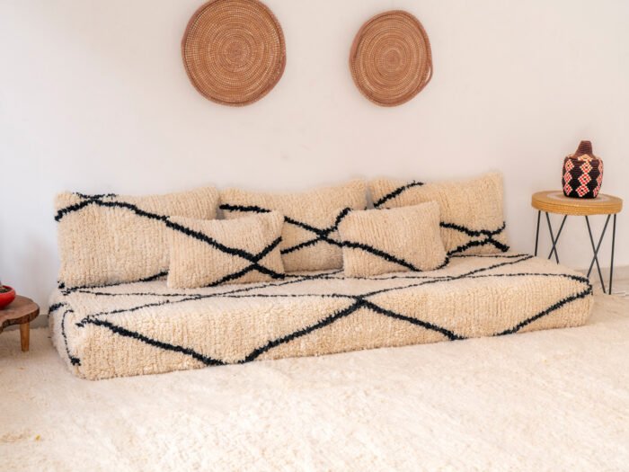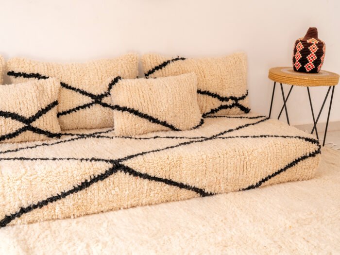 These Moroccan Floor Couch Covers are a perfect blend of modern design and authenticity. The wool material provides softness, while the diamond pattern adds a touch of elegance. It is the ideal addition to any seating and living space.
