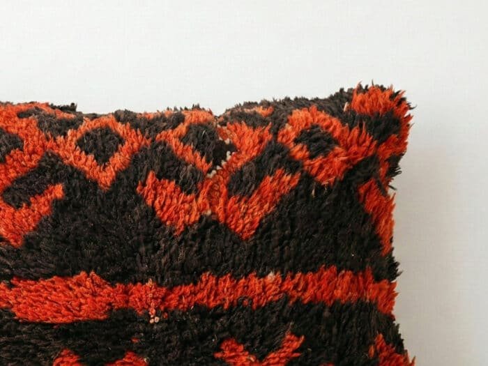 Moroccan Berber Black & Red Shag Pillow