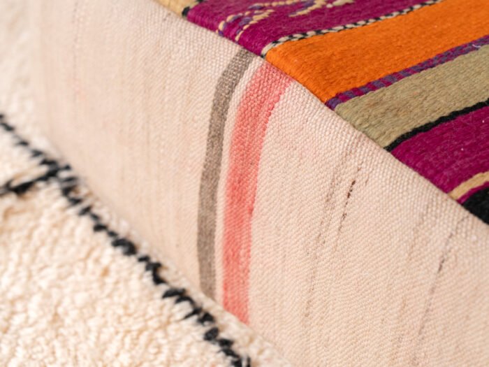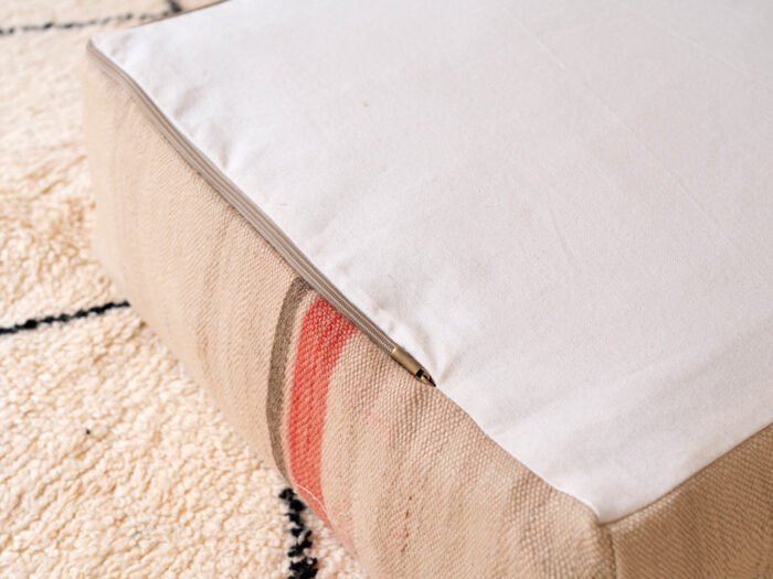 This Ottoman Cover is handmade in Morocco mixing parts of berber blankets.