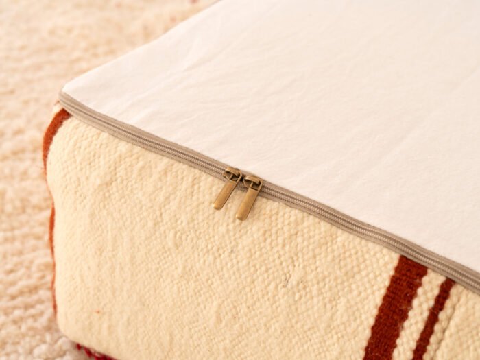 Handwoven Moroccan Rug Pouf with Rust color Accents