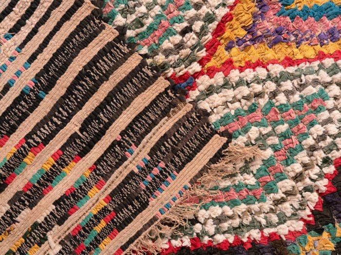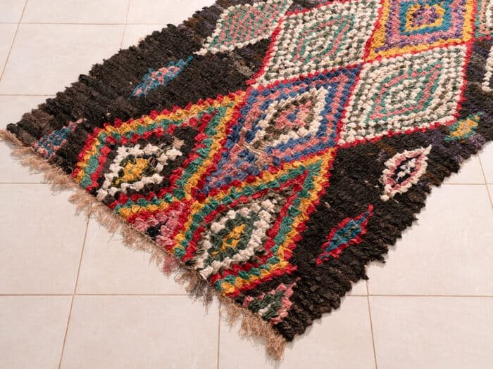 Each Boucherouite rug is a one-of-a-kind creation, telling its own story through the vibrant tapestry of colors and textures.