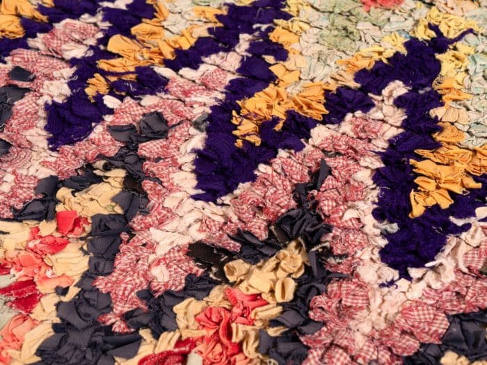 Each rug tells a story of tradition and creativity, with no two pieces being exactly alike due to the variety of fabrics used.