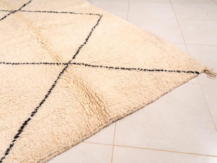 The simple lozenges pattern not only adds visual interest but also tells a story of craftsmanship and heritage, reflecting the rich cultural history of the Beni Ourain tribes of Morocco.