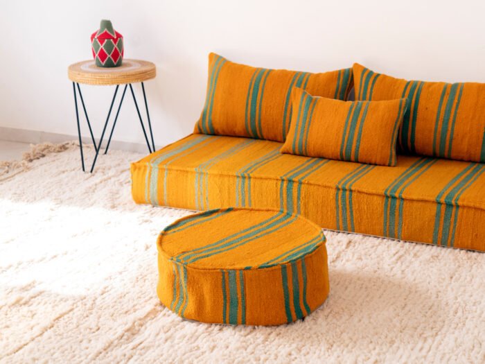 Handcrafted Moroccan Floor Sofa with Stripes and Pouf
