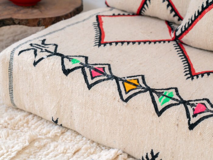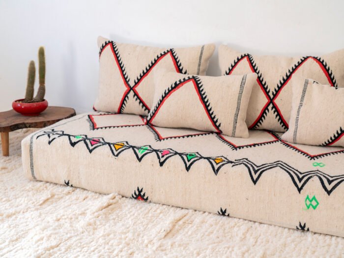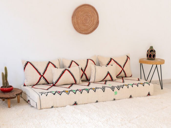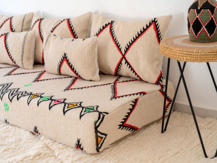 These Moroccan Floor Couch Covers are a perfect blend of modern design and authenticity. The wool material provides a contemporary look, while the pattern adds a touch of character. It is the ideal addition to any seating and living space.