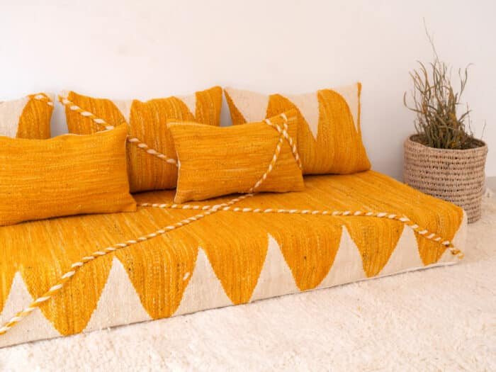 These Moroccan Floor Couch Covers are a perfect blend of modern design and authenticity. The wool material provides a contemporary look, while the colourful patterns add a touch of playfulness and character. It is the ideal addition to any seating and living space.