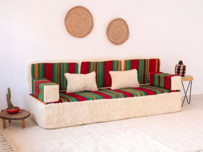 $299.00Original price was: $299.00.$269.10Current price is: $269.10.5 ft Moroccan Handmade Red Beni Floor Sofa
