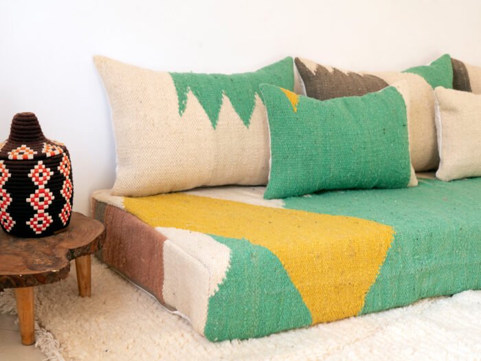 These Moroccan Floor Couch Covers are a perfect blend of modern design and authenticity. The wool material provides softness, while the colourful design adds a contemporary touch. It is the ideal addition to any seating and living space.